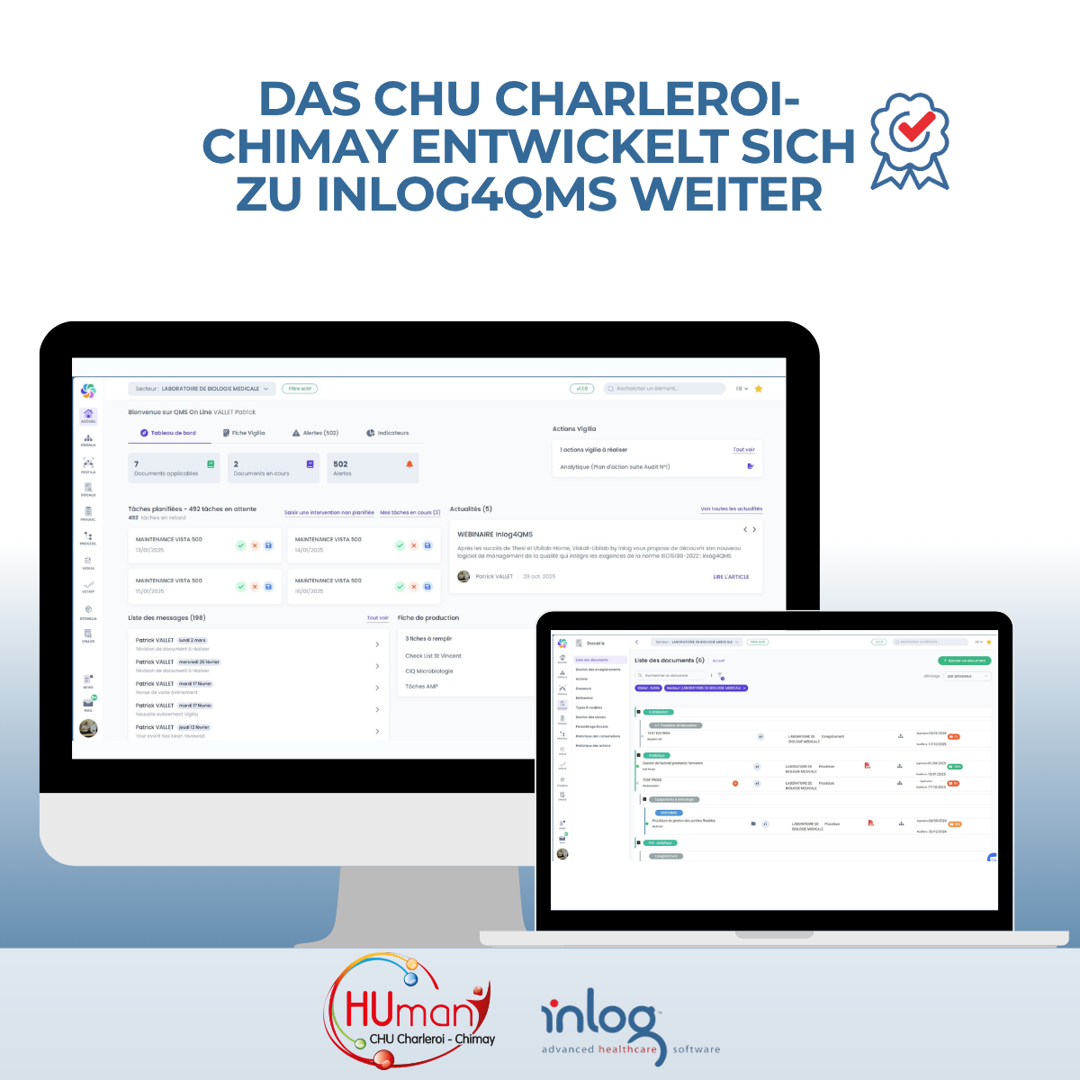 Eine langfristige Partnerschaft: Das HUmani – CHU Charleroi-Chimay entwickelt sich zu Inlog4QMS weiter