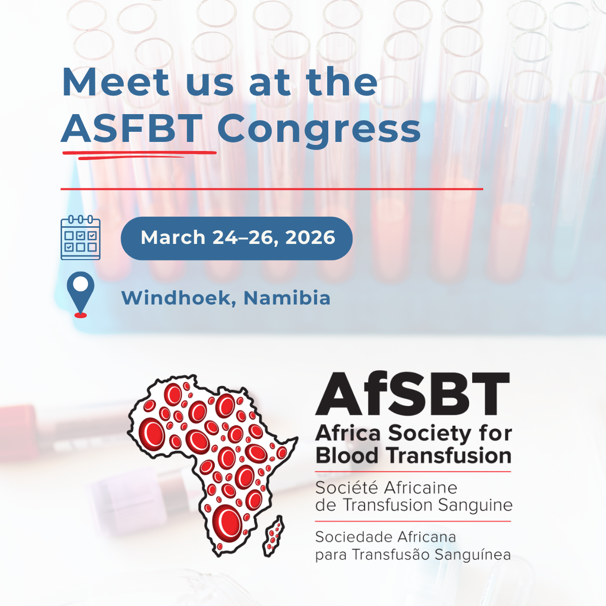 INLOG will be in Windhoek, Namibia, from March 23–25, 2026, for the Africa Society for Blood Transfusion (AfSBT) Congress. The event will offer a unique opportunity to meet our clients, partners, and new contacts from across the African continent.